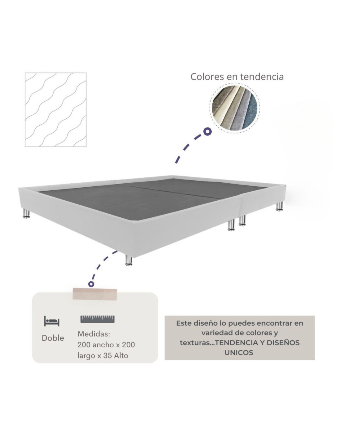 Nuestra cama está conformada por espaldar y base tipo cama que da la apariencia de flotar, Diseño moderno para darle un estilo único a nuestra habitación.