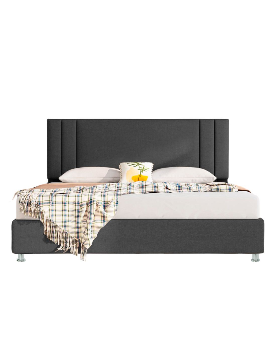 Cama King + espaldar Lupe Gris plomo + colchon Flexia quarzz