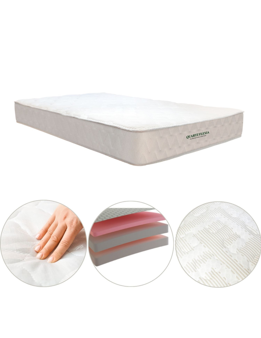 Este colchón está diseñado para ofrecer un descanso reparador con tecnología avanzada y materiales de alta calidad. Su estructura de resortes Bonnell de acero de alto carbono proporciona soporte ortopédico, mientras que el núcleo de espuma de densidad 26 asegura firmeza y confort. La tela acolchada en tejido de punto aporta suavidad y frescura, y un filtro aislante de 400 gramos mantiene el colchón seco. Ideal para quienes buscan durabilidad y confort.